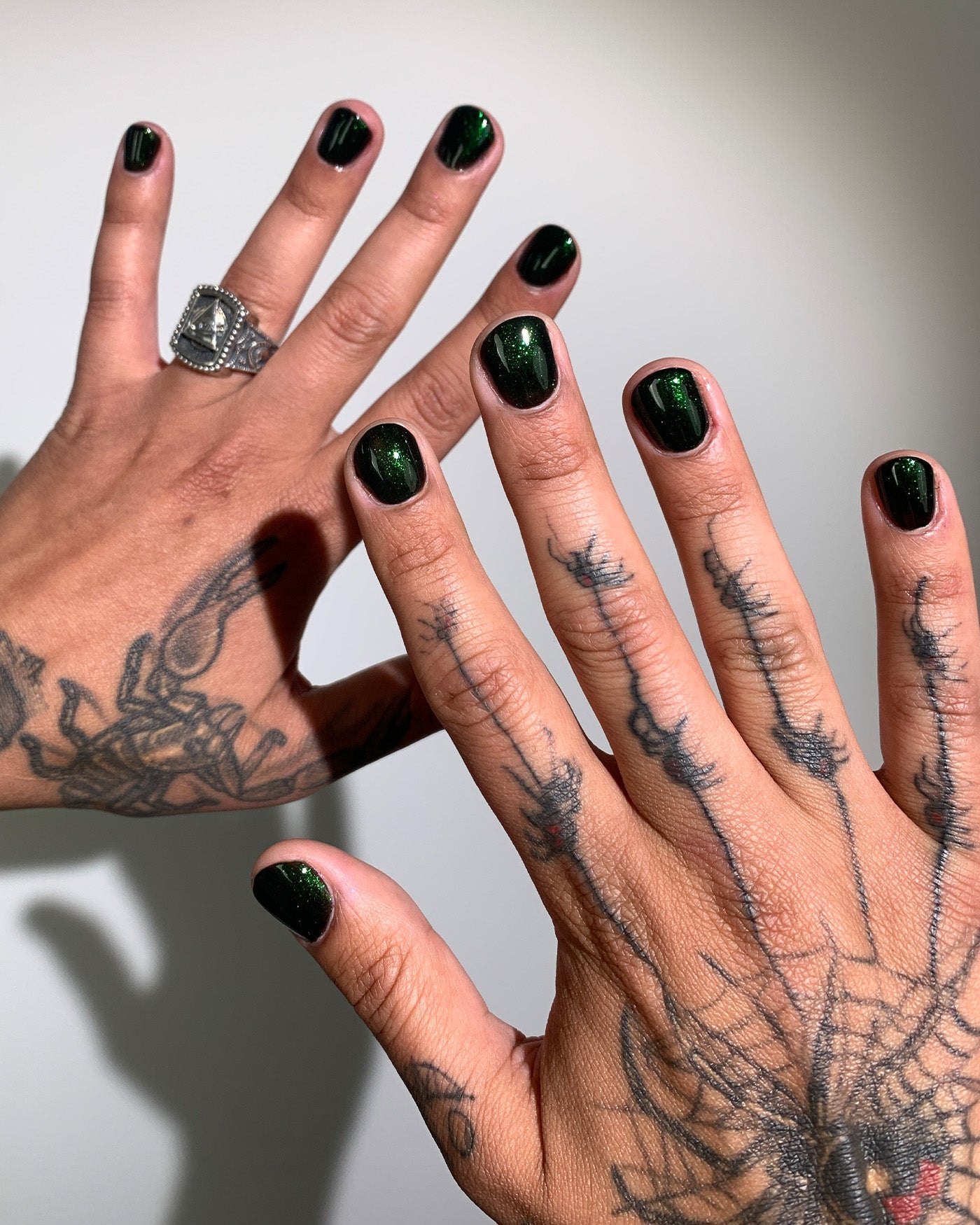 ACCESS DENIED is a black lacquer filled with green shimmer. from the GLITCH IN THE MATRIX collection.