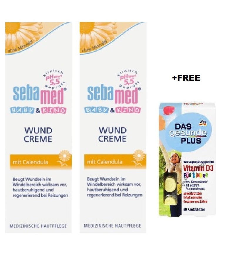 2xPack Sebamed BABY & CHILD WOUND CREAM with Calendula - 150 ml +FREE Mivolis Vitamin D3 Chewable Tablets for Children