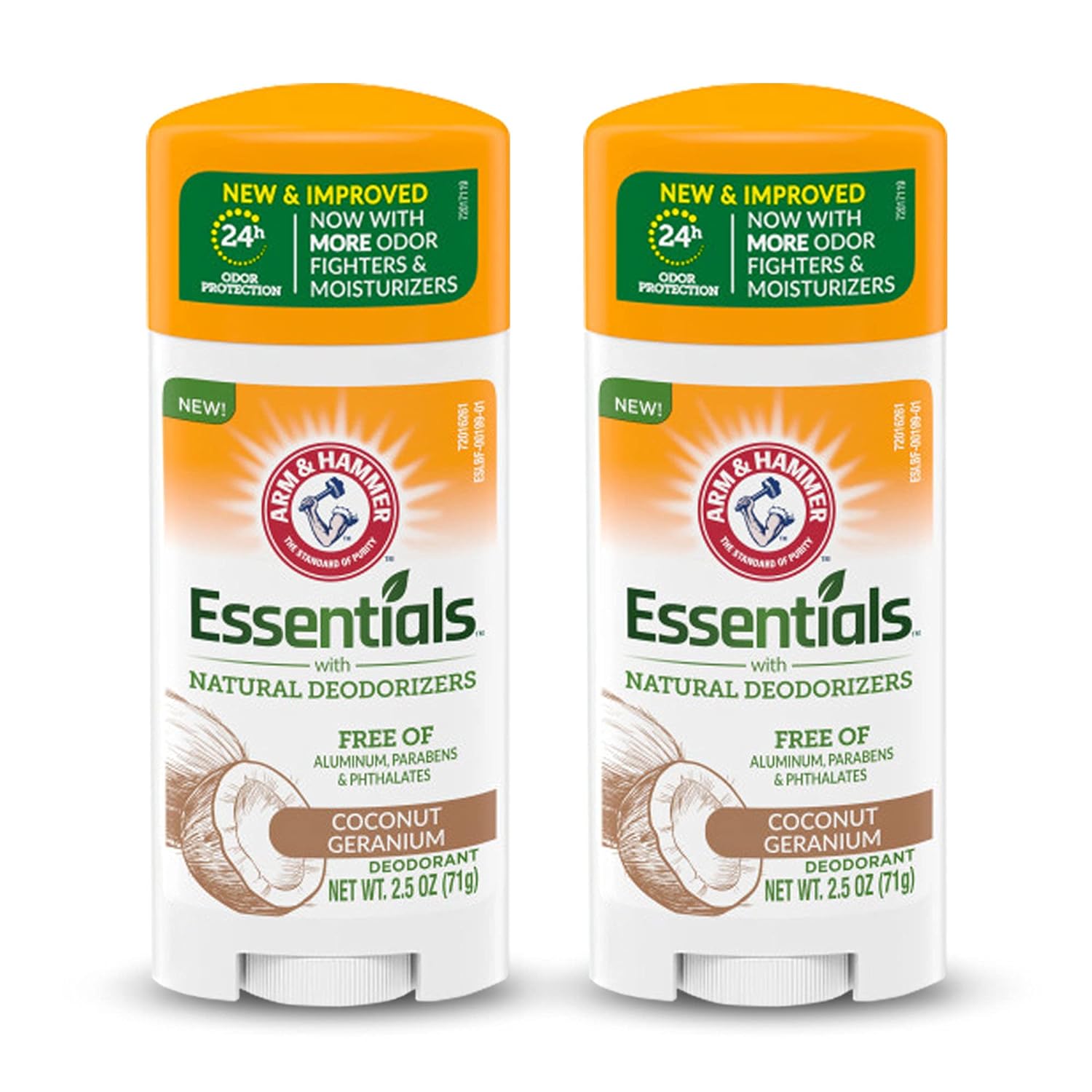 ARM & HAMMER Essentials Deodorant - Made with Natural Deodorizers - Coconut Geranium - Free From Aluminum, Parabens & Phthalates, 2.5 oz (Pack of 2)