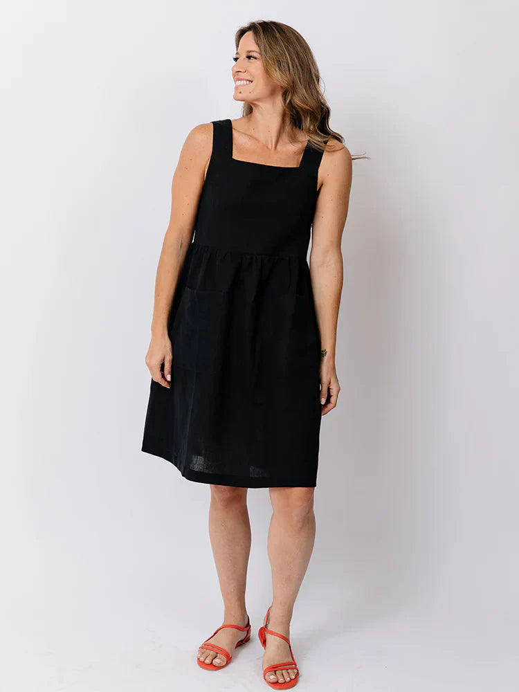 Billie Jumper Dress - Black Linen