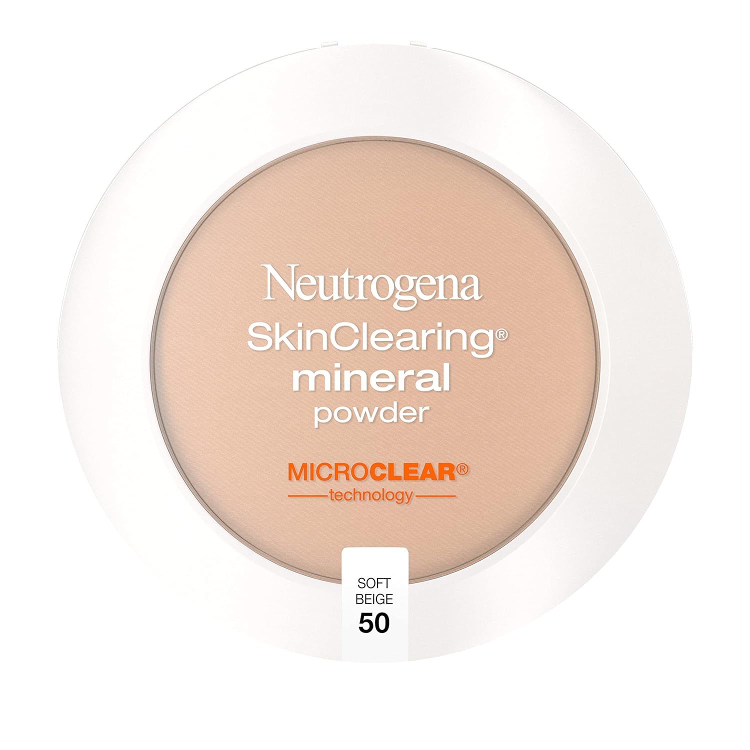 Neutrogena SkinClearing Mineral Acne-Concealing Pressed Powder Compact, Shine-Free & Oil-Absorbing Makeup with Salicylic Acid to Cover, Treat & Prevent Breakouts, Soft Beige 50,.38 oz