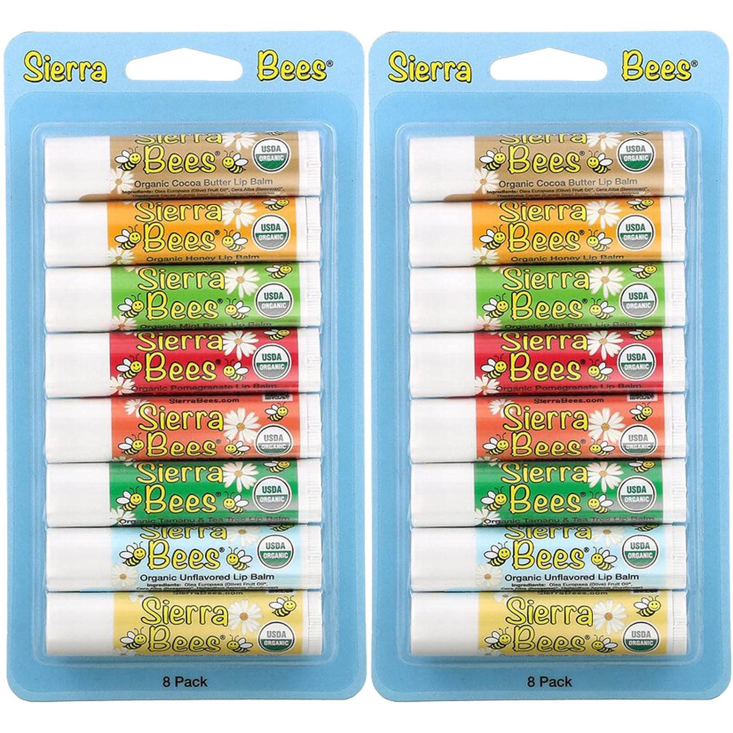 Organic Lip Balm by Sierra Bees - Moisturizing Balm for Chapped Lips - Featuring Sustainably Sourced Beeswax, Olive Oil, Sunflower Oil, & Vitamin E - Variety 8 Pack - Pack of 2