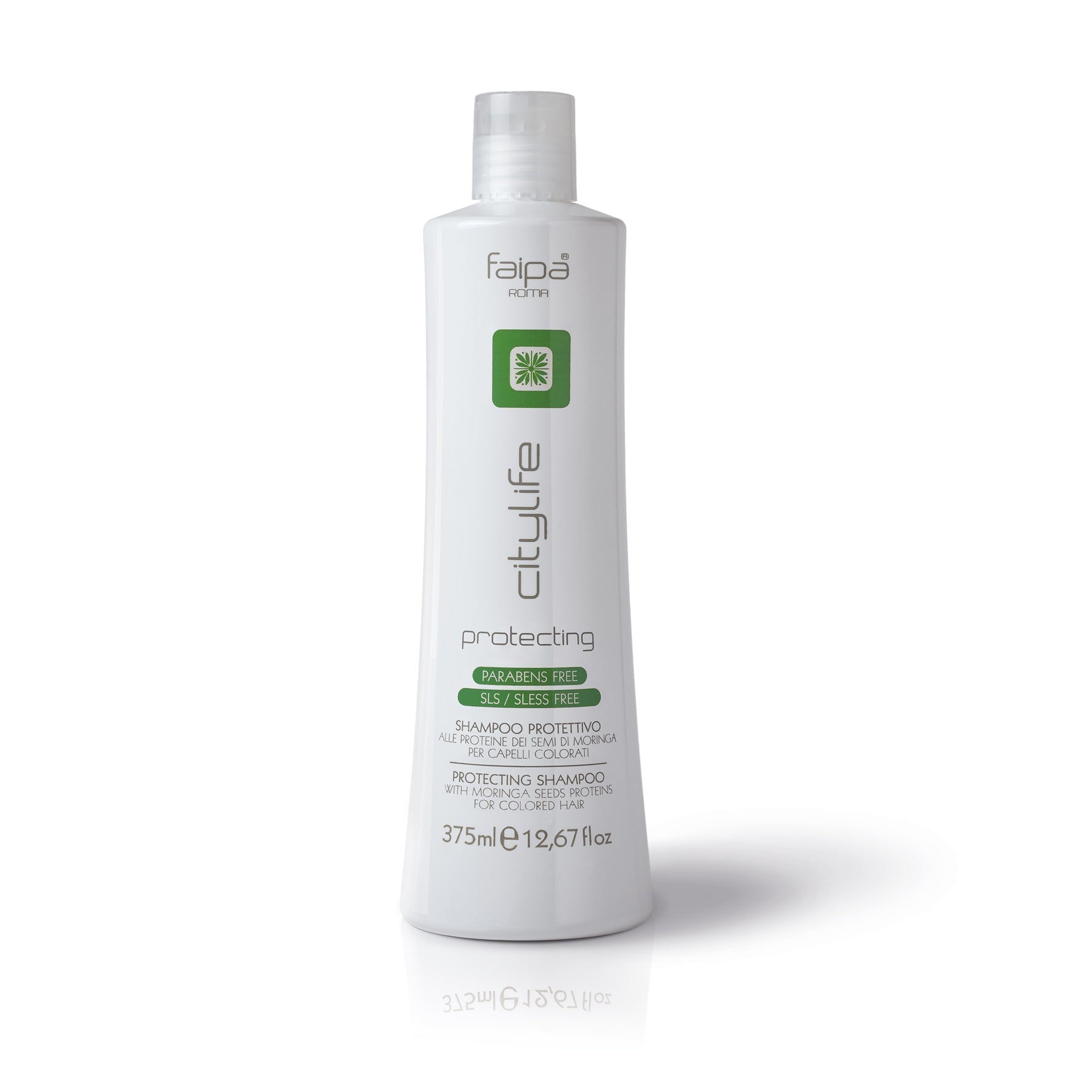 Directions:?Wet hair and distribute the shampoo evenly throughout massaging in with your fingertips. Leave on a few minutes. Rinse out and repeat the application. Proceed with?City Life Protecting Cream.