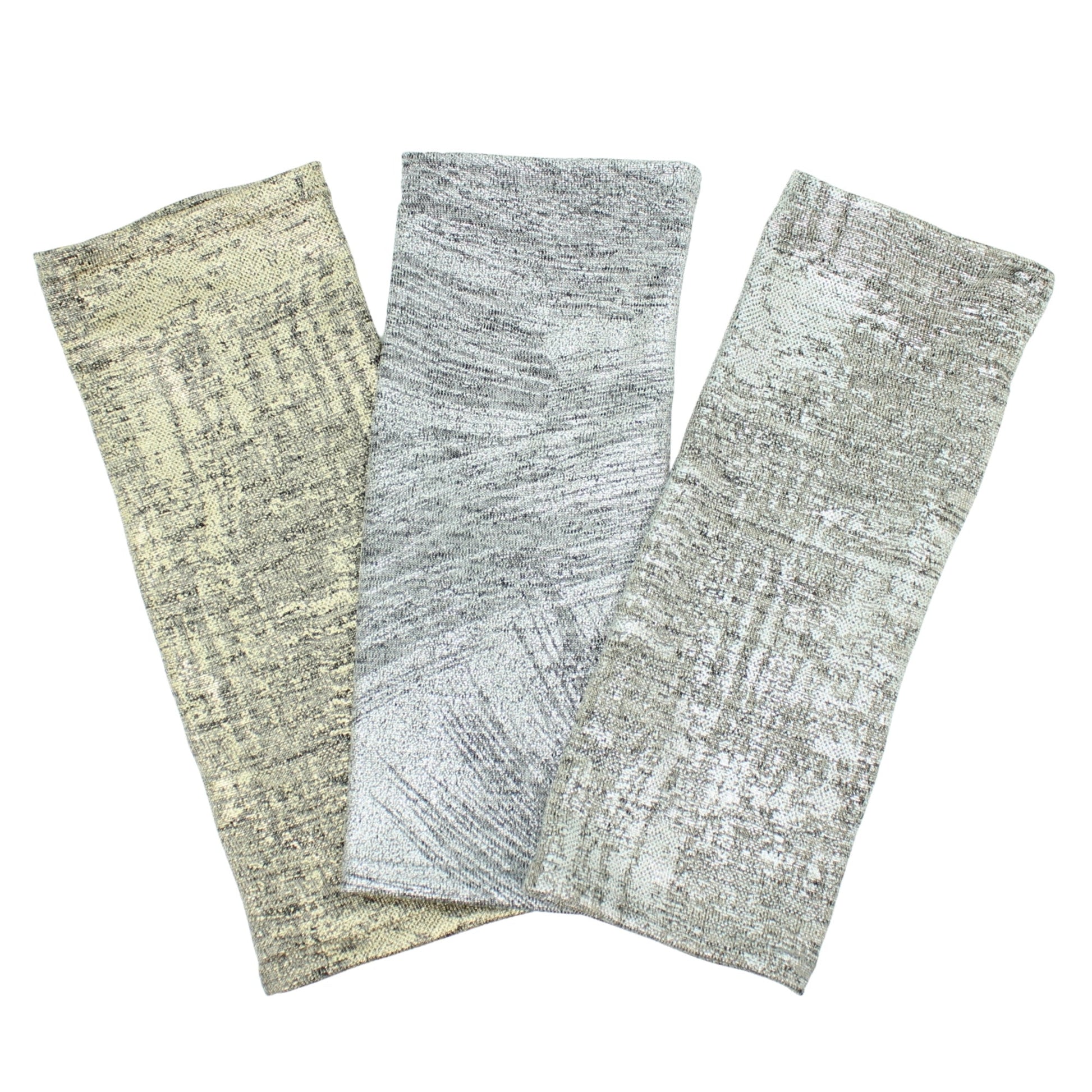 Reflection metallic knit fingerless gloves, featuring a thumb hole.