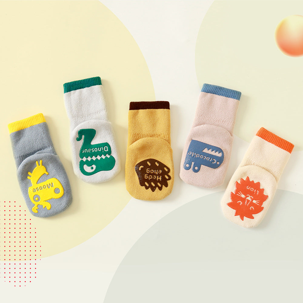 Toddler Non-slip Socks Animal Gripper Socks 5 Pairs for 1 Set