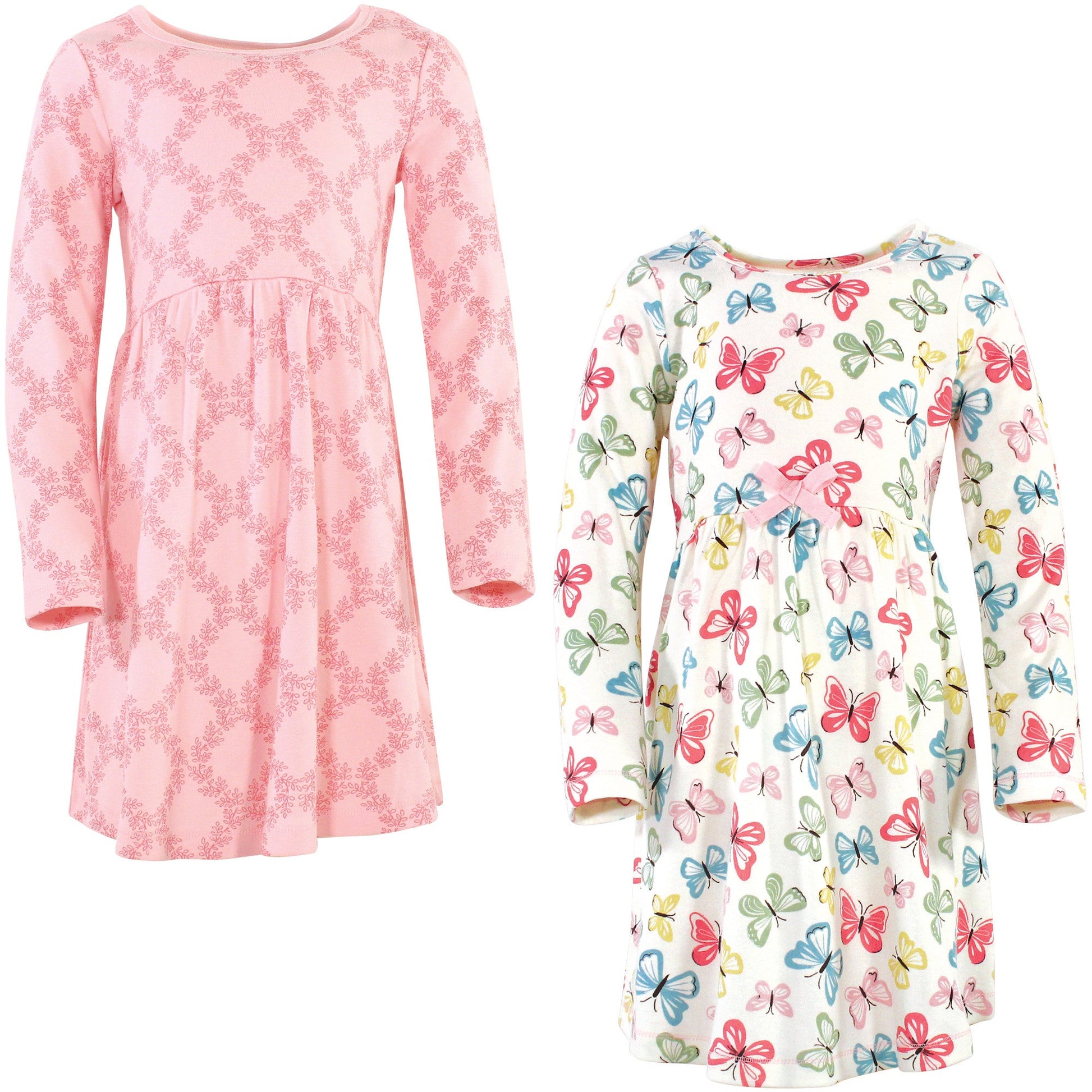Touched by Nature Big Girls and Youth Organic Cotton Long-Sleeve Dresses 2-Pack, Butterflies