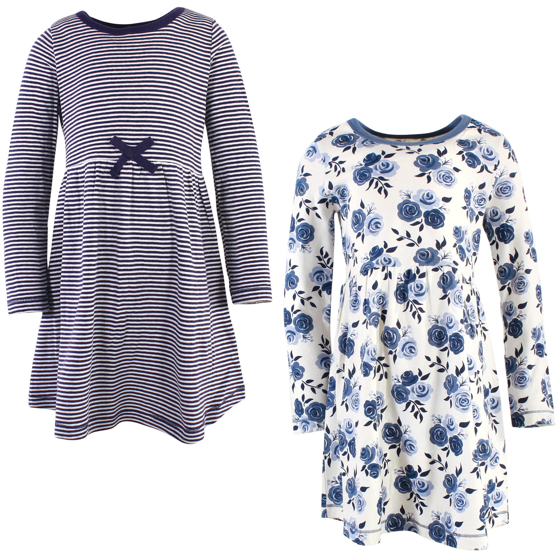 Touched by Nature Big Girls and Youth Organic Cotton Long-Sleeve Dresses 2-Pack, Navy Floral