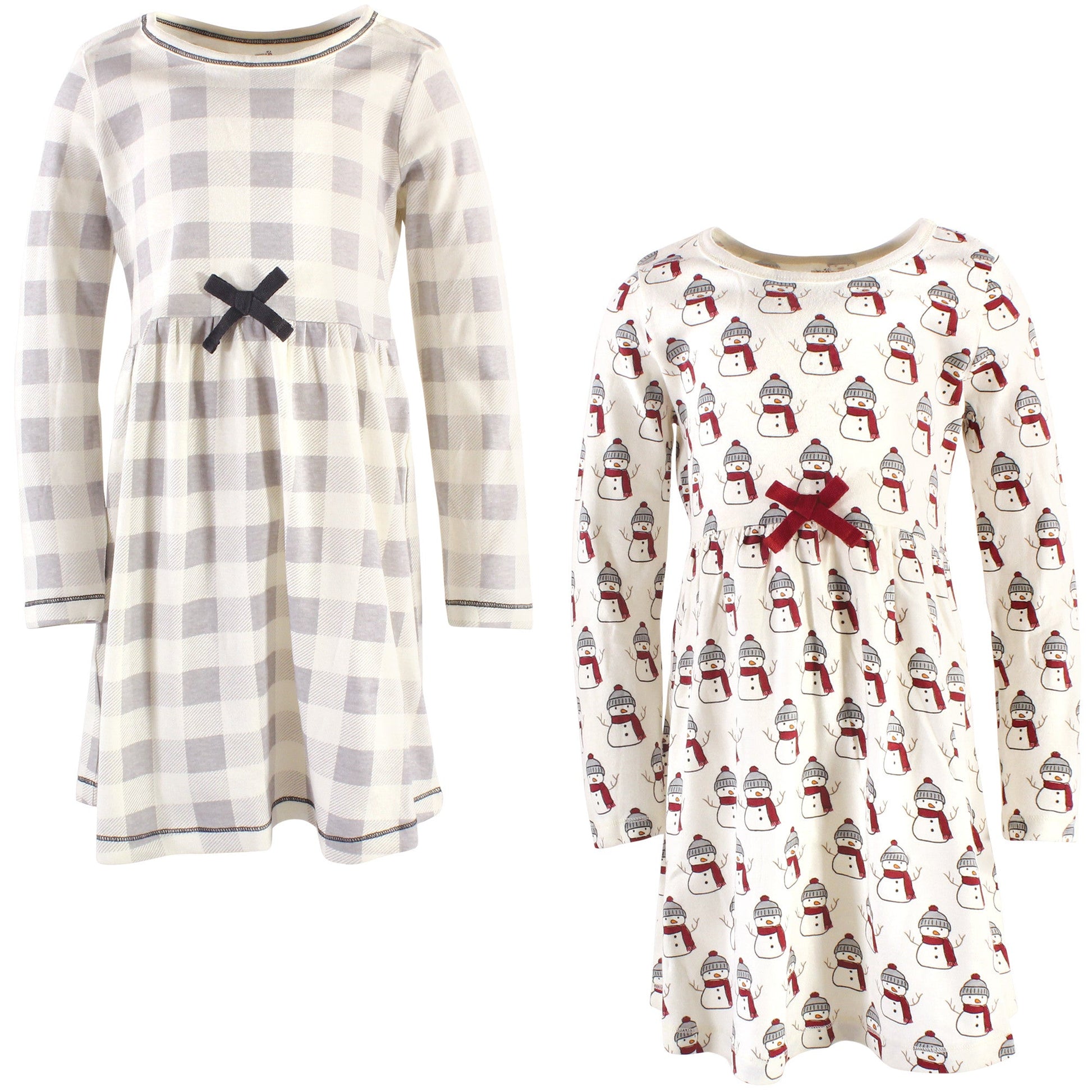 Touched by Nature Big Girls and Youth Organic Cotton Long-Sleeve Dresses 2-Pack, Snowman