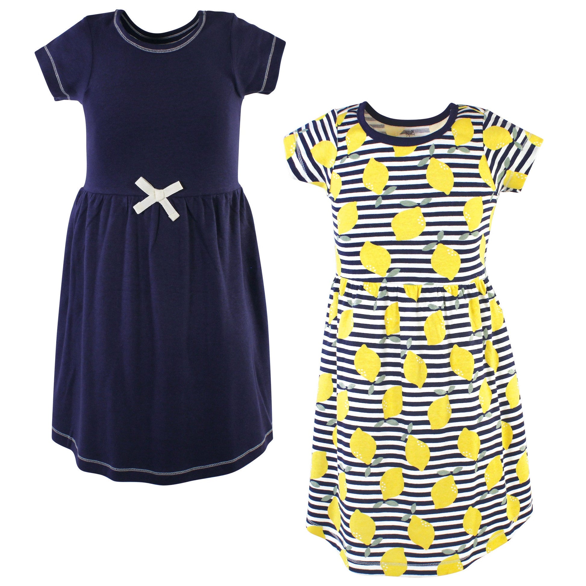 Touched by Nature Big Girls and Youth Organic Cotton Short-Sleeve Dresses 2-Pack, Lemons