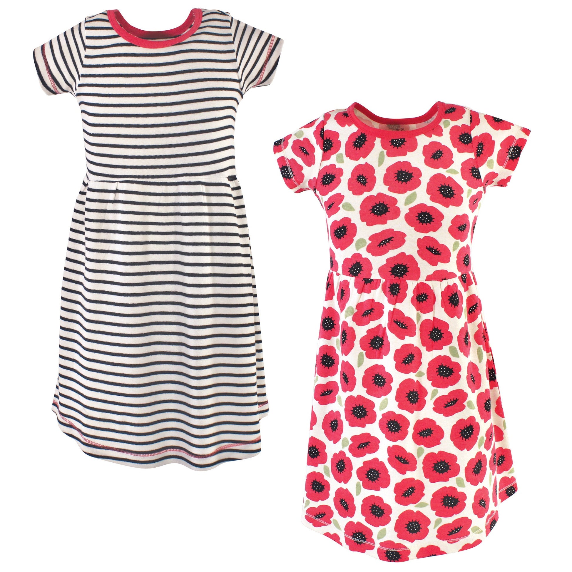Touched by Nature Big Girls and Youth Organic Cotton Short-Sleeve Dresses 2-Pack, Poppy
