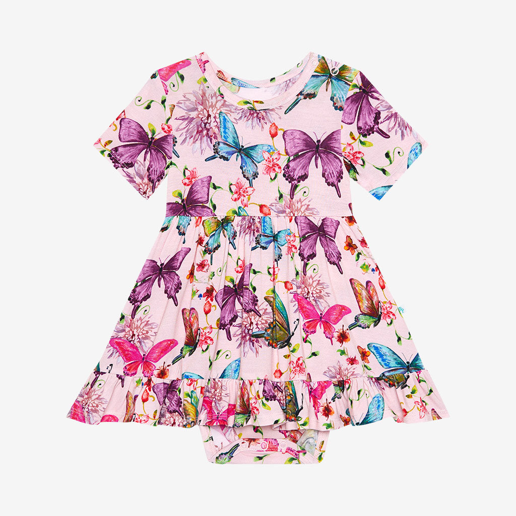 Watercolor Butterfly Ruffled Twirl Bodysuit Dress