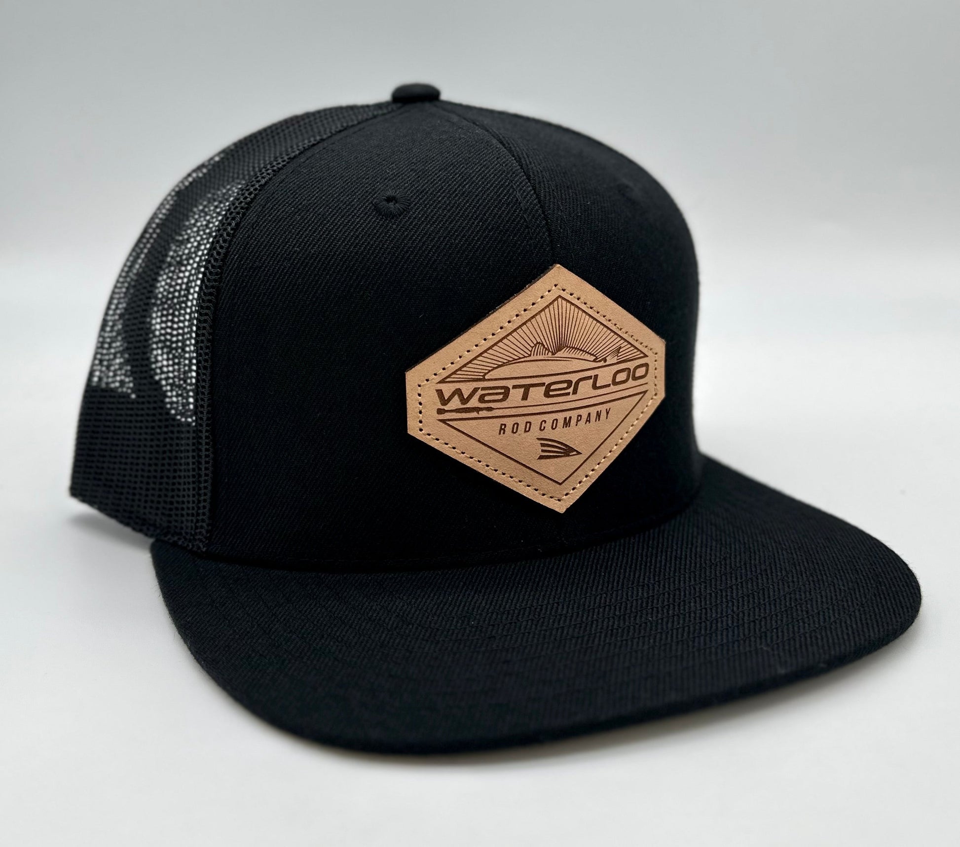 Waterloo Black Flat Bill Cap - Leather Diamond Patch