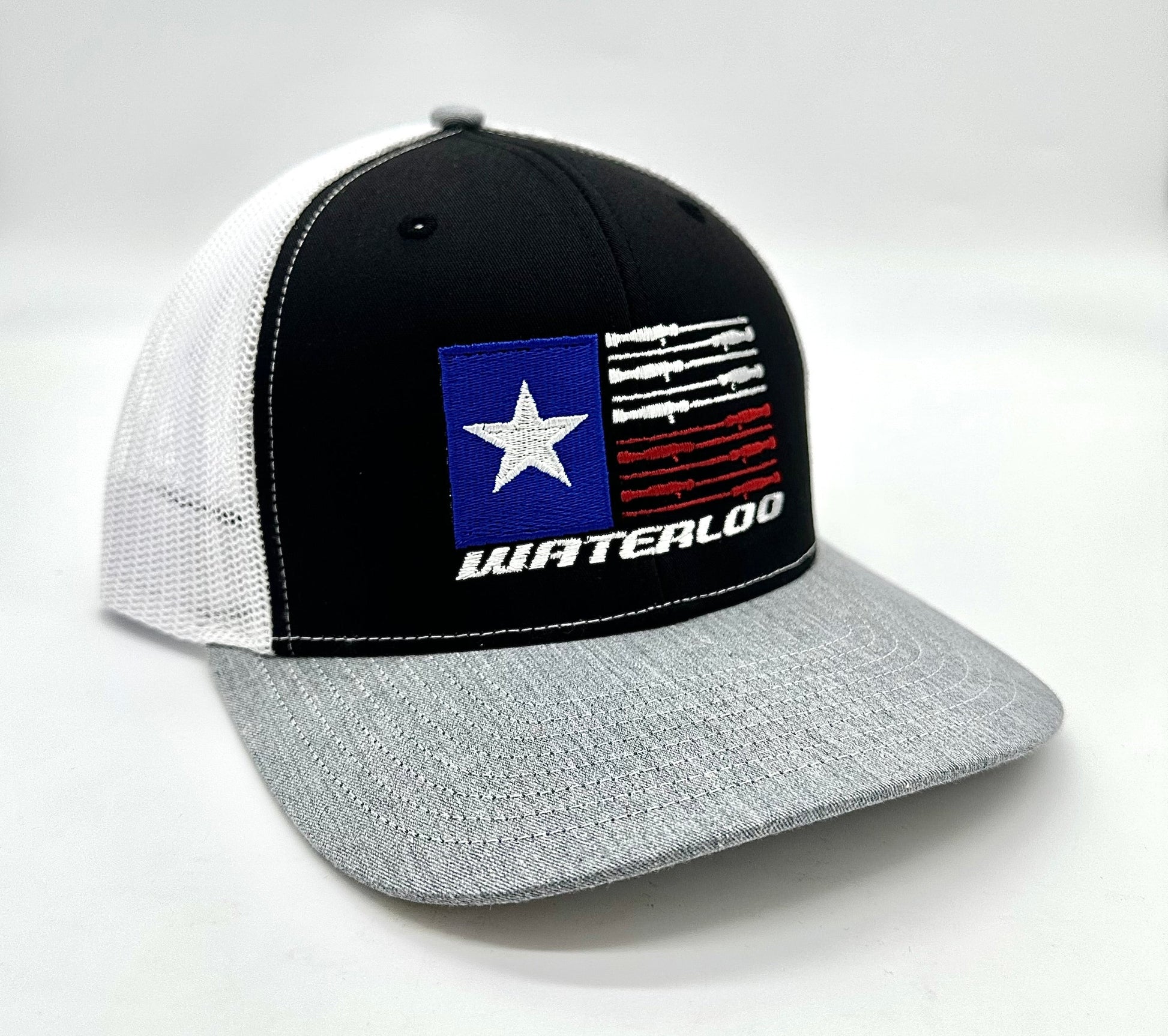 Waterloo Black, White, and Heather Grey Cap - Rod Flag Logo