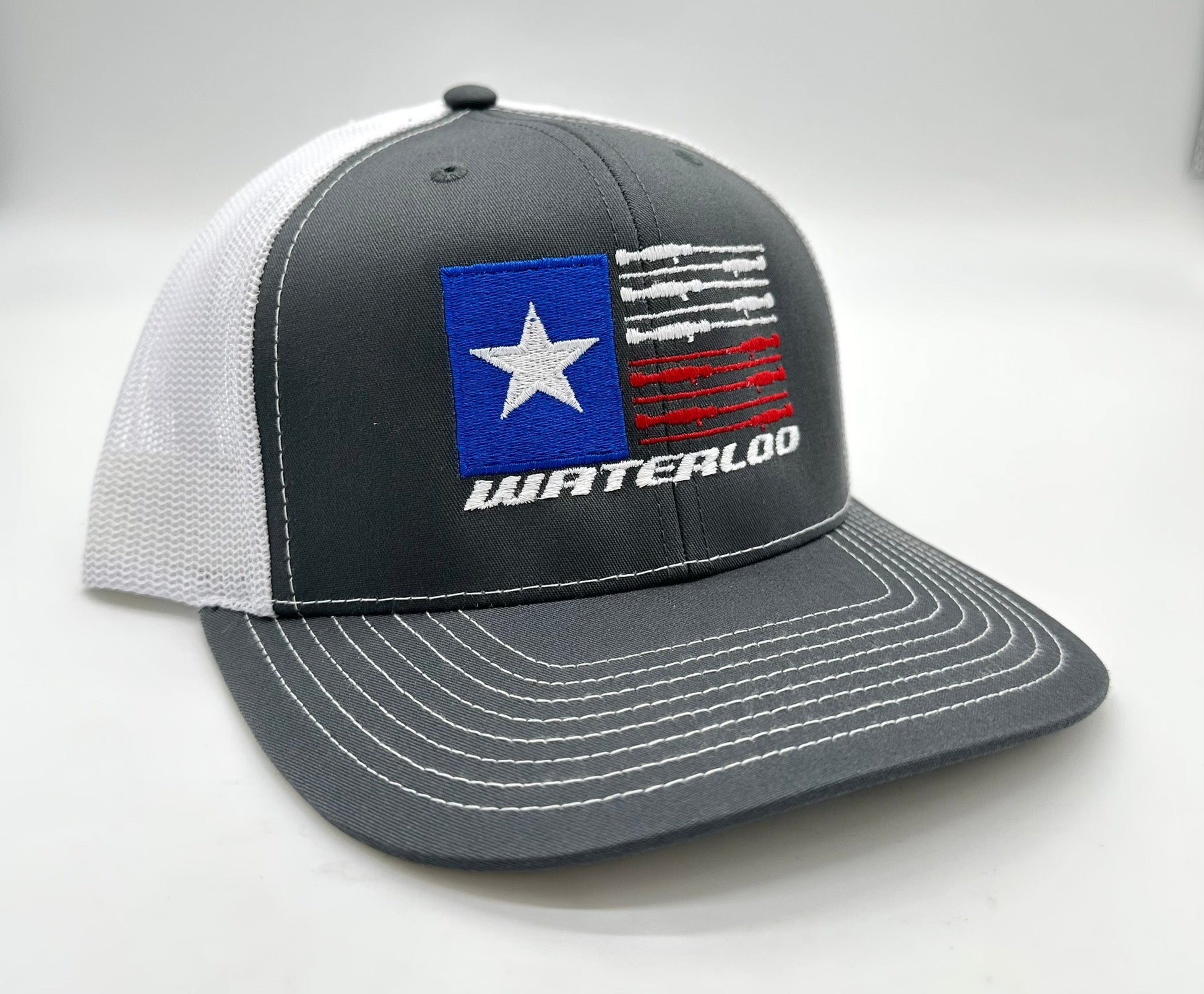 A Richardson 112 style with the Waterloo Rod Flag logo on the front.