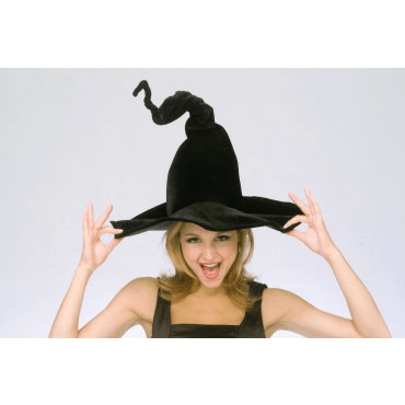 This black witch's hat truly stands out from most. For starters, it is large, which makes a statement on your head as well as when you walk into a room. Though one of the coolest things about it is the internal wireframe. It is modestly flexible, which lets you adjust it to better fit your head, or you can simply leave it in its originally twisted creative form.