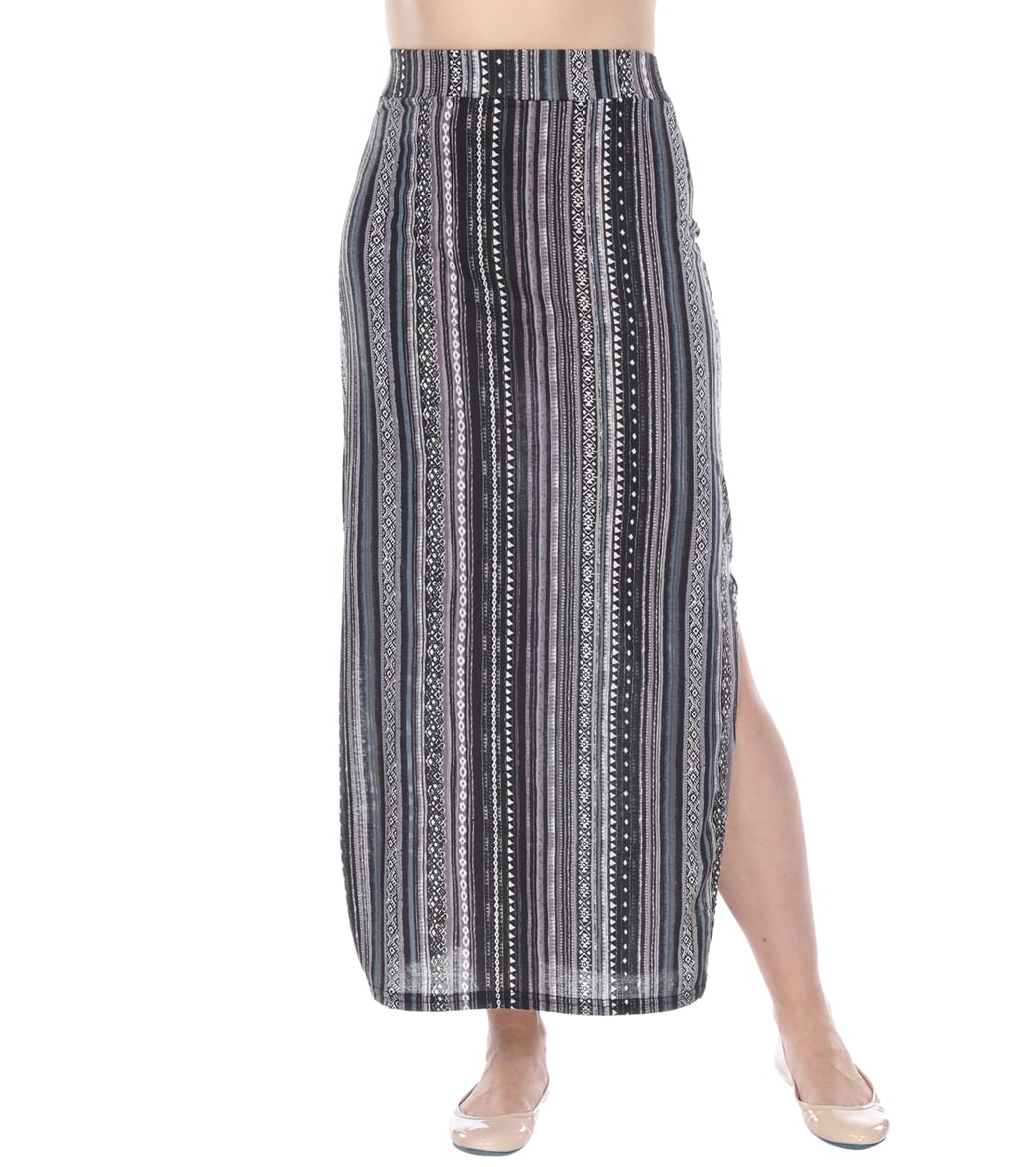 Bring the style this season with the Yak & Yeti Long Skirt Stretchy Striped Tribal Print.